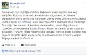 Sinoči so Laščani končali sezono, v polfinalu je zdesetkano vrsto Zlatoroga porazila Rogaška in se prebila v finale, Laščani pa na počitnice. Omenjena tekma pa je bil zadnja tudi za dosedanjega kapetana Laščanov 30-letnega Mateja Krušiča. Velik fan Sidharte je obelodanil na Facebooku, da je odigral zadnjo tekmo v dresu pivovarjev. Kje bo nadaljeval svojo športno pot, ni jasno.